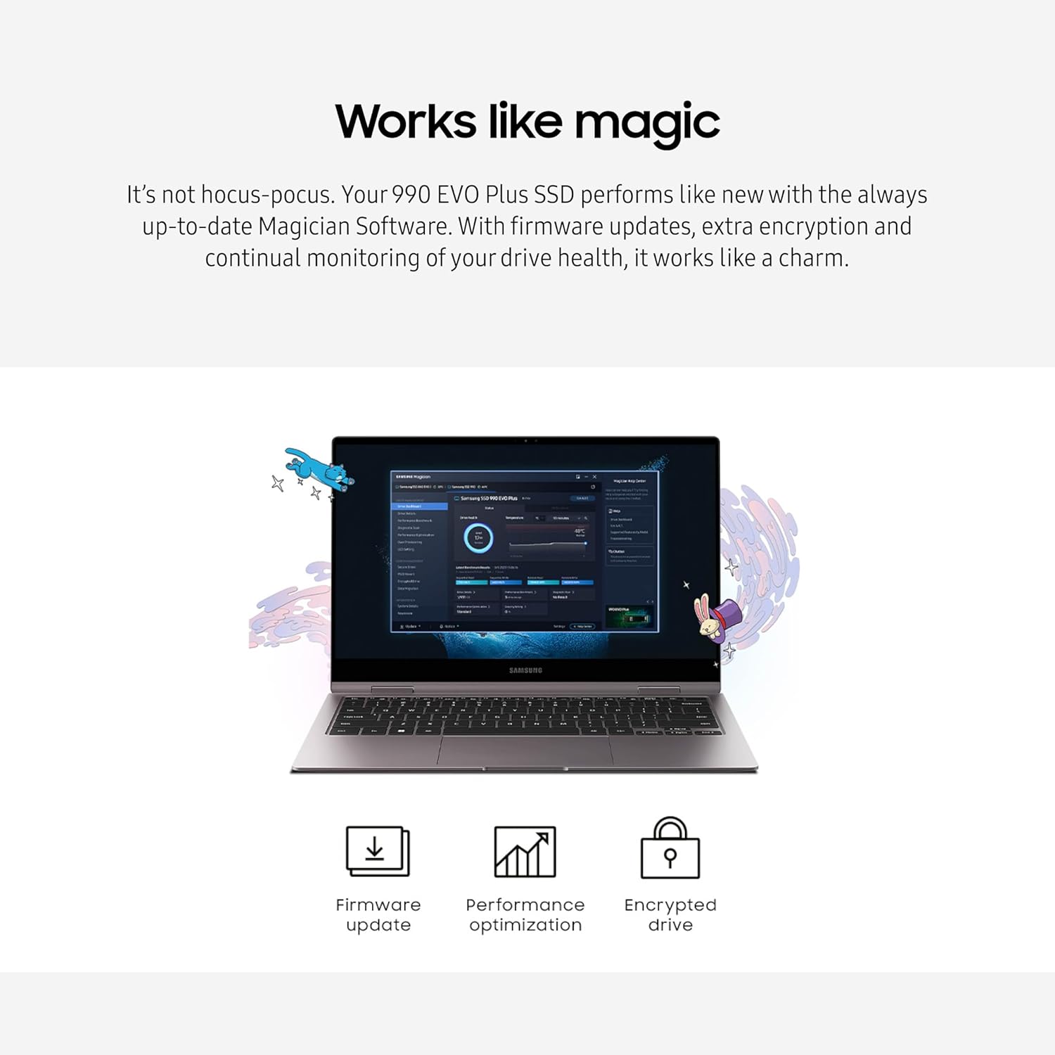 • It’s not hocus-pocus. Your 990 EVO Plus SSD performs like new with the always up-to-date Magician Software.